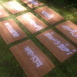 Take a look at the first picture. What can you see? What can you read? This is a prototype for a project I was hoping to deliver in Leeds looking at threshold and welcoming. Working with community groups and churches we were planning to enable locals to design their own welcome mats, aiming at about 400 mats in total which would go on exhibition with an accompanying bring and share community meal. The project focused on the meanings and issues around welcoming, looking at different threshold traditions from around the world. Bread and salt in Eastern Europe, Lai in Hawaii, a white silk scarf in Mongolia, the toran in South East Asia, a cup of tea in the UK. In a post Brexit Britain this felt very much of its time. The picture shows the nine most commonly spoken languages in our country, and includes the indigenous Welsh, which like all our Celtic languages and identities, suffered from huge racist prejudice and marginalisation in the past, perhaps in the same way that other nationalities represented by these nine welcome mats, still do.