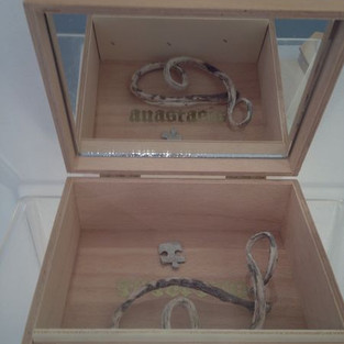 The two pictures I have chosen for this week are taken from my exhibition ‘Amid’ which explored the idea of finding the divine ‘in the midst’ of life. I was not denying either the need for withdrawal and contemplation, nor the importance of the visceral, but considering the possibility that we can find spiritual meaning and connection through our everyday: in the ‘ordinary’ mixture of practical concerns and the inner yearning for profundity. The boxes in the pictures were part of a set in which I had printed words that could only be read when looking in the mirrored lids. I chose words that spoke about the connection with the divine, through lived experience. Darshan is a concept from Buddhism, and Anastasis is an idea from Christianity. Both talk about finding spiritual reality through an active and often challenging engagement with the everyday.
